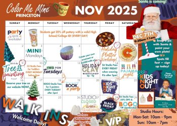 We are a Walk-in studio! No reservations required unless you have more than 6 painters. Follow us on Instagram or Facebook to stay up to date! Located in the Princeton Shopping Center (back parking lot, inside the courtyard)!